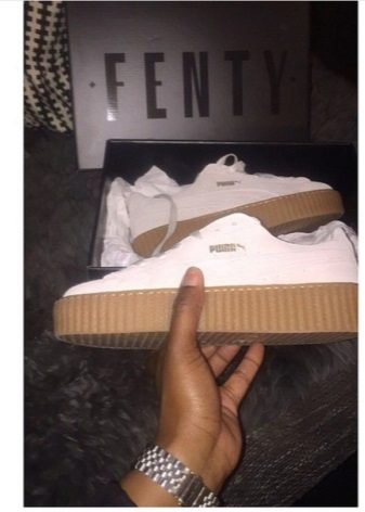 Branded shoes Puma Rihanna necessarily equipped with company logos. Moreover, this sign should look perfect. But a slight flaw or negligence in writing or in the material (a logo can not just be spread on products, but be made, for example, from metal) - an occasion to beware and suspect a fake.