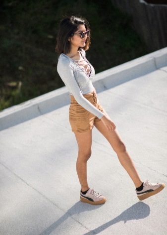 If we consider the color palette of Rihanna sneakers, then fashionistas have much to choose from. These are classic black models, as well as black options with contrasting inserts in white or beige. Looks attractive with white, pale pink, sandy top. Lovers of bright colors can choose bright red sneakers.