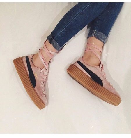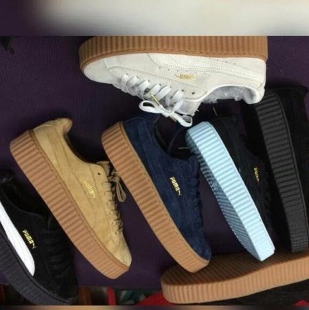 In 2014, the pop star became the creative director of Puma and began to develop new lines of clothing and shoes for women. As for the sneakers, the Rihanna debut collection called Puma Creeper became a combination of futurism and comfort, absorbed the best features of the brand models of the distant 70-80s.