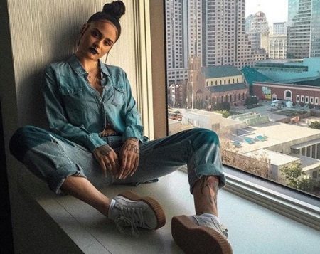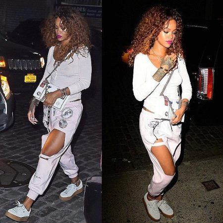 Rihanna can see a variety of clothing combinations with Puma sneakers from Rihanna herself - she loves posing for photographers, showing stylish outfits that include her own line of shoes.