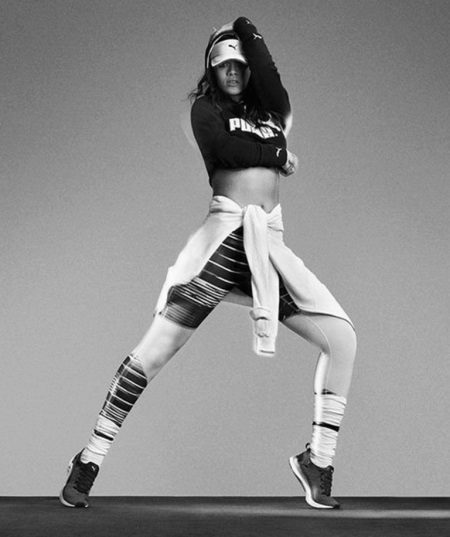 Interestingly, sports images at the show of the first Rihanna collection were demonstrated by famous models - Naomi Campbell, Suzy Menkes.