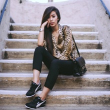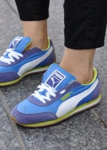 - Universality. Puma sneakers can be combined with different wardrobe items. They look stylish in tandem with a light dress, as well as with a fashionable suit.