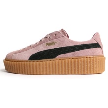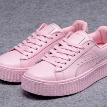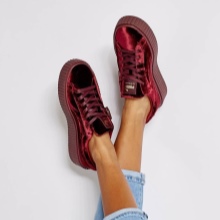 Pink sneakers are made from both suede and velvet. They look glamorous and stylish. Each fashionista can add style and beauty to her look with sneakers from the German brand Puma. Burgundy shoes look spectacular. This color scheme appeared after the company began working with singer Rihanna.