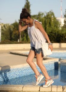 Many fashionistas prefer Puma sneakers in white. Although this color is impractical, denim shorts and a white top will blend nicely with white sneakers. Effective and stylish.