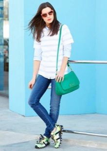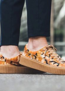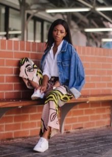 Sneakers with embossed sole-semolina are ideal for embodying everyday bows. In the new season, designers used different colors - purple, raspberry and pink. Animal-printed sneakers look spectacular and fashionable.