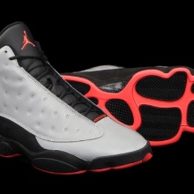 - Air jordan 13. This model of sneakers is original in that in addition to using the mentioned 3M material, manufacturers used additional experiments with color: red details on the sole and logo.