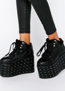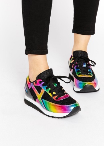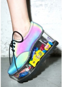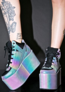 - Reflective sneakers Qozmo Hi. An original and slightly outrageous model designed for visits to night clubs and other similar establishments. A very high, but stable platform, a unique shoe top that flashes with bright color reflections when light hits them. All this creates an original and extravagant image of an avid fashionable party girl.