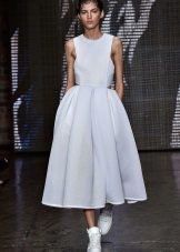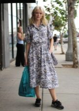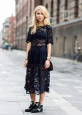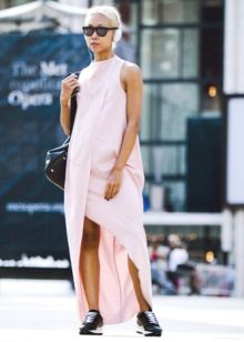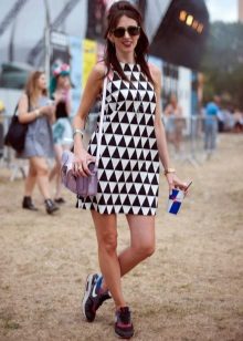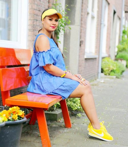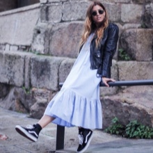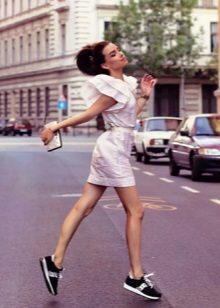 Which dress should not be combined with sneakers? With waves, frills, ruffles, with thin lace. All deliberately feminine models will work worse with sports shoes.