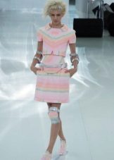 You can make another color combination on the principle of complementarity of colors. That is, choose a dress and sneakers so that the colors in them are close or the same. For example, a red and green plaid dress and sneakers with red tweed inserts and green dots from Chanel.