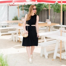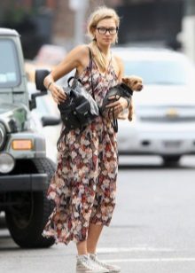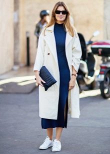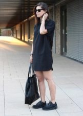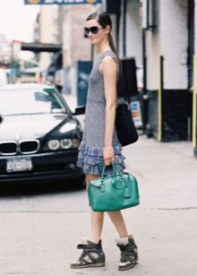 Well, the last principle of drawing up the image - both the dress and the sneakers are neutral in color and serve only as a background. For what? For bright massive jewelry or a very creative designer handbag.