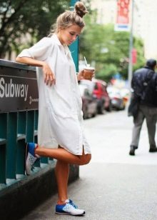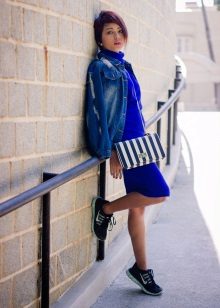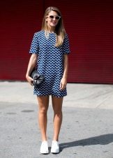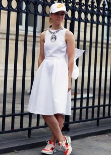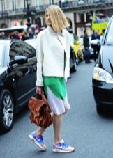 With the choice of sneakers, in this case, you can play a fool and put on pink, bright blue, but in general any catchy and unusual models. By color, it is better to combine them with small accessories - a scarf, a bandage in the hair or a necklace.