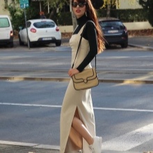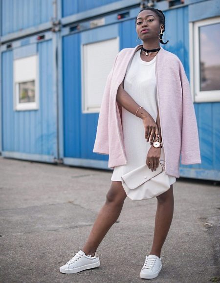 Age and complexion do not matter. The main thing is that your style should not be classic, and you yourself would be easy on fashion and like to experiment. After all, sneakers with a dress are feminine and very comfortable, it is for those who are active and spend most of the day on their feet. And also for those who are not ready to choose between beauty and comfort, that is, for real women.