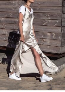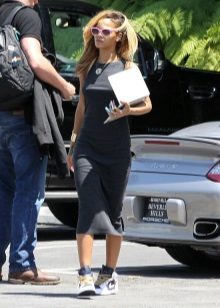 This is very bold. And you need to have great taste or a large team of stylists to make it look organic. But there is an opportunity to add a concise evening dress in a casual wardrobe! Combining it with a T-shirt and sneakers, you can get a stunning stylish ensemble.