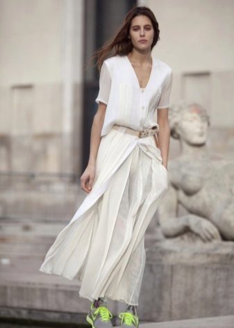 Dress in a long midi with a flared pleated skirt in combination with sneakers - an excellent basis for grunge style.