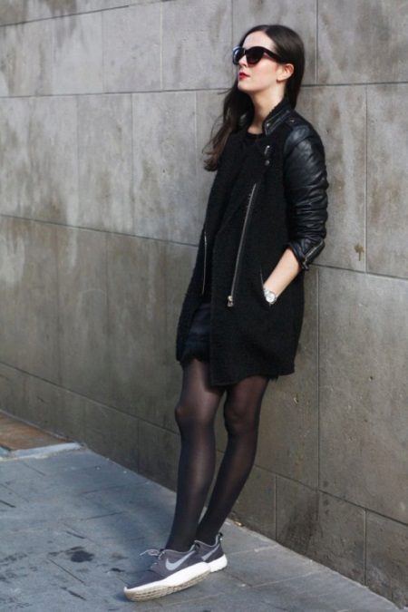 It is better not to wear flesh-colored nylon tights with sneakers. If necessary, replace them with traces of cotton or nylon.