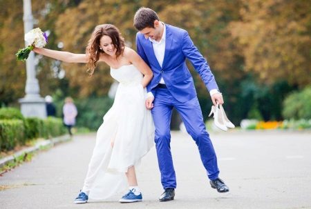 It is worth mentioning another quite creative combination - sneakers and a wedding dress. It looks fresh, stylish and very mischievous!