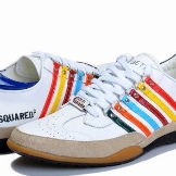 White is still an advantage. On its background are strips of various colors and sizes. Shoelaces also try to make white so that they do not spoil the expressiveness of the stripes and the contrast that they create.
