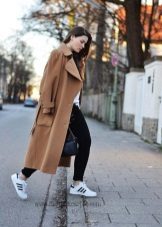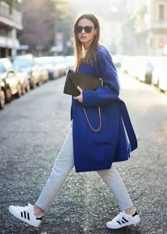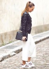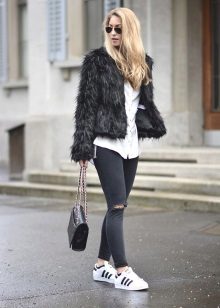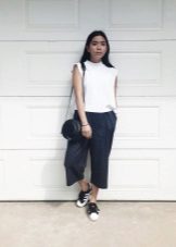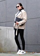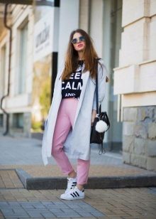 If you are tormented by doubts about creating an image with sneakers, then you can safely choose leather or denim slim pants. If you want to dilute the tight bottom, then you should wear a sweater or sweatshirt. A massive coat is also suitable. Rolled pants or cropped models are another good option for creating a stylish look with sneakers. Pajama fashion is developing rapidly, collecting more and more of its fans. Many pajama sets are just made for such sneakers.