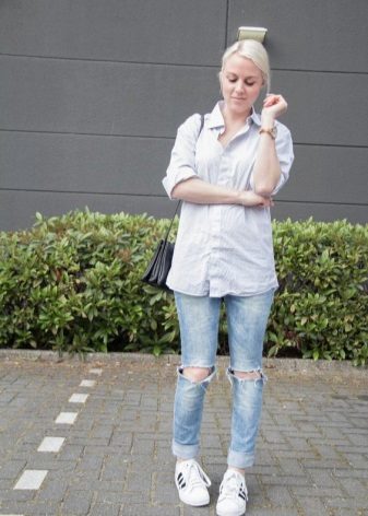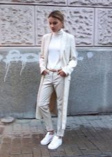 Even in office style, there are now sneakers with stripes. For many business women, this news is a real gift. You can replace uncomfortable heels with sneakers and wear them with shirts or blazers.