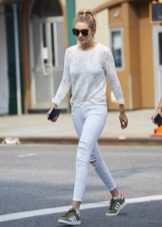 A separate conversation deserve sneakers with a white stripe.White color goes well with many colors, which is actively used by designers presenting the world various color combinations.