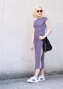 Sneakers are no longer perceived as pure sports shoes, especially when there is a conversation about models with stripes. In the modern fashionable world, such shoes go well with skinny pants, shorts, dresses, even evening ones.