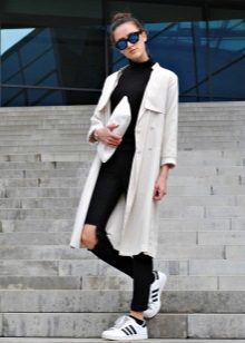 As for outerwear, raincoats, cropped coats and biker jackets can easily be included in one image with sneakers.
