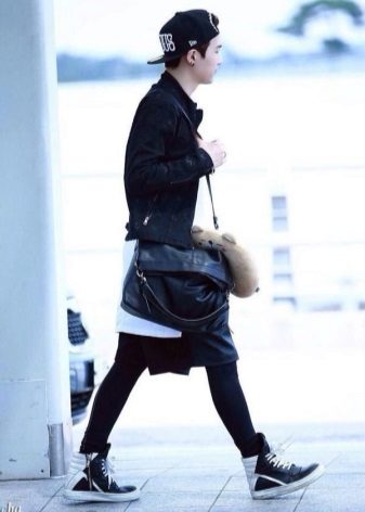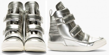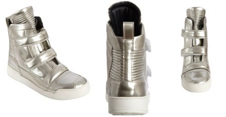 Sneakers are a high silver model made of leather with rubber soles. The cost of these sneakers is almost 1.5 thousand dollars.
