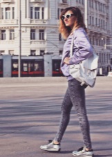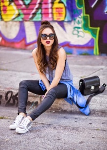 Silver sneakers will look great with skinny jeans and torn boyfriends, skinny classic trousers, chinos, and matte leather leggings. At the same time, the top of your bow can be anything: a turtleneck, top, cardigan, sweatshirt, shirt, t-shirt. As outerwear, you can choose a straight coat or oversize coat, a jacket, a long jacket without sleeves, bomber jackets.