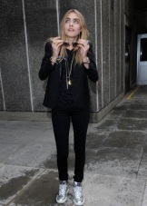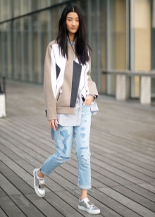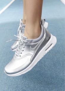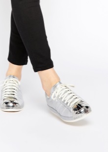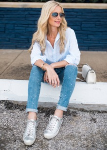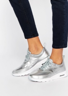 Silver sneakers have long been considered universal, just like black or beige shoes. Even simple jeans combined with them will look advantageous.