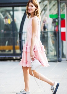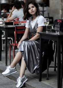 Since silver does not look contrasting on fair skin, it helps to visually lengthen the leg slightly. Therefore, metallic sneakers can be safely worn with dresses and skirts.