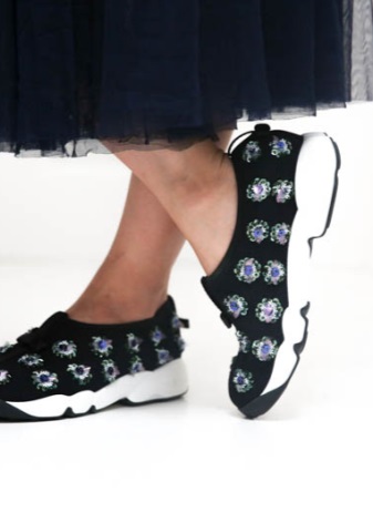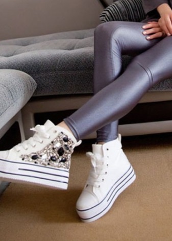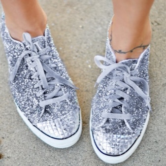 Sneakers with Swarovski stones are considered a real trend. This is an indispensable detail in creating a club, extravagant and vibrant image.