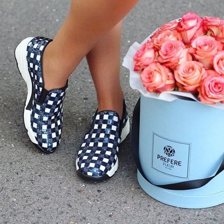 Sneakers are made in the popular style of sport-chic. They do not have lace and are made from breathable material. This contributes to the creation of comfort and ease when walking.