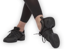 - Dance. Height to the ankles will reduce the risk of ankle sprain. Reliable fixation of the foot with the help of lacing will not allow the leg to “hang out” during jumps and rotations. To provide better flexibility, the sole, as a rule, consists of two completely separated parts, and the toe is often combed. Sneakers for dancing are more common in black.