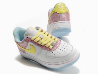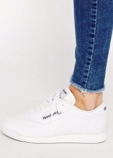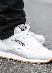 - For fitness or aerobics. Such sneakers are almost always understated and light, they have a thin and flexible sole with a small herringbone pattern. It is infrequently cold in the room, so a mesh or perforated surface will not be superfluous. In sneakers for fitness or aerobics, you must have a sufficiently good fixation of the ankle. White sneakers for such training look pretty attractive.