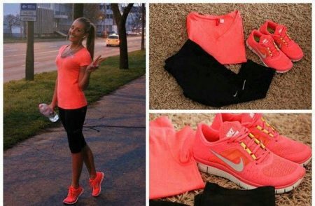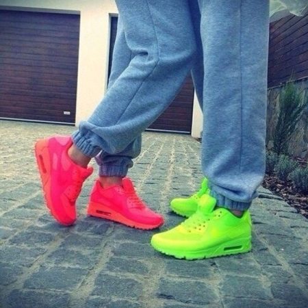 Bright neon sneakers in combination with soft sweatpants will support a stylish and original image not only in the gym, but also on everyday walks with friends