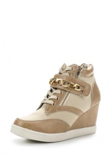 The combination of colors is harmonious, sometimes you can find decor in the form of spikes. The brand logo is often on the tongue. The height of the sole is about 8 cm. Models made can be made of genuine or artificial leather. The sole is rubber and often there is a tread in the form of a flower. Lightness, convenience, femininity are the distinctive features of wedge sneakers. Especially if it is in a hidden form.