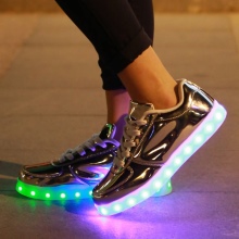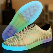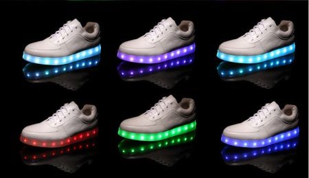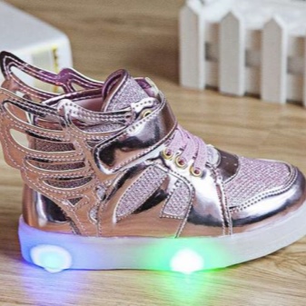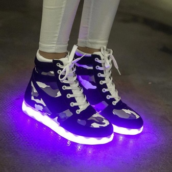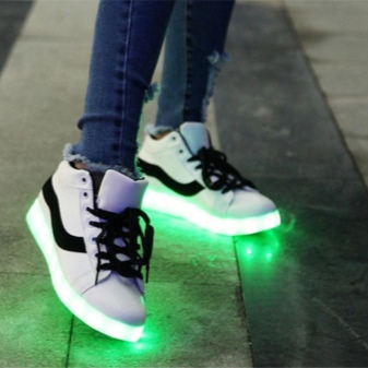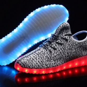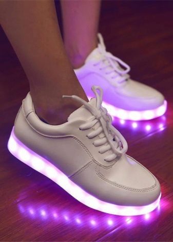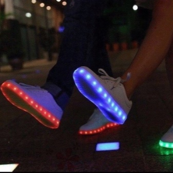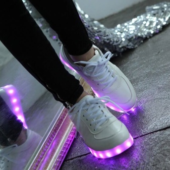 The color scheme of the backlight may be different - everyone will be able to choose a version of light green or yellow, pink or blue and many other colors. Noble silver and gold models are also available. This effect looks most advantageous on white light sneakers. There are models where the sole glows in many shades (more than ten).
