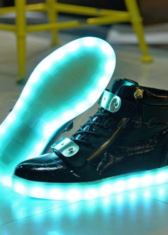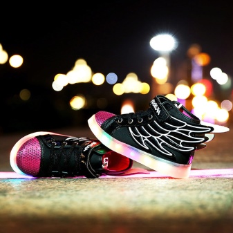 Fashionable youth sneakers with backlighting often differ in their original design: models with wings or on a platform (which also glows).