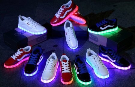 Italian brand Geox known for introducing innovative technologies and ultramodern materials (“breathable” soles) into shoe manufacturing. The brand is also developing its line of sneakers with LEDs, which are designed for both everyday wear and for special occasions (for example, visiting a nightclub). The lights mounted in the sole are capable of glowing in different modes.