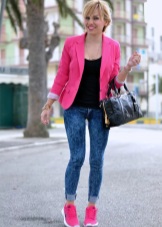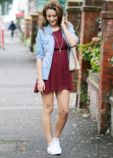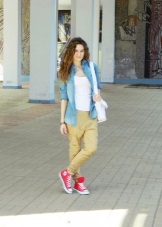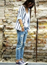 - For a walk - jeans, shorts, tops and T-shirts, with a jeans or jacket on top with textile sneakers of any cut and color. Fashionable option - marine style.