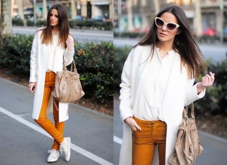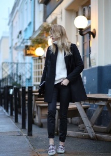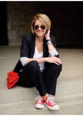 Do not be afraid to experiment with the classic style. Today you can often see fashionistas in trousers and pencil skirts with white sneakers or slippers.