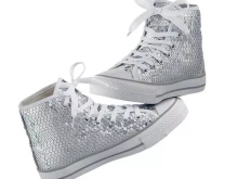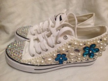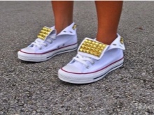 These shoes are decorated in a variety of ways - stripes from bands or names of musical groups, slogans, rivets, spikes, lacing, Velcro, large seam, rhinestones and sequins, lace. For children - cartoon characters.