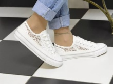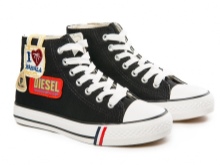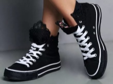 - sneakers - differ from sneakers in a thin sole from the vulcanized material and the same toe, the top is textile. In classic sneakers, the top rises above the ankle, and in some models it also covers the calves. These shoes are especially loved among youth subcultures.