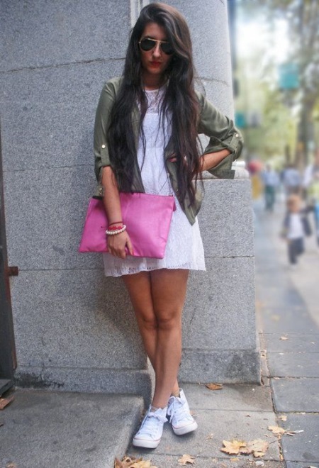 At the peak, rag sneakers are white. They can be worn in a sports style, and combined with casual style. This model with dresses and skirts looks especially interesting.