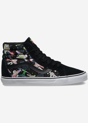 The basis for this model was the series of cartoons "Toy Stories". This is an updated high top with black suede and canvas tops. On the whole surface - images of one of the main characters - Lightyear Base (Svetika).