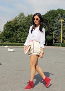 - Bright sneakers that can be worn with a voluminous T-shirt, T-shirt, top and boyfriend jeans are suitable for the casual look;