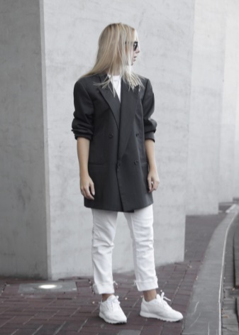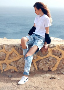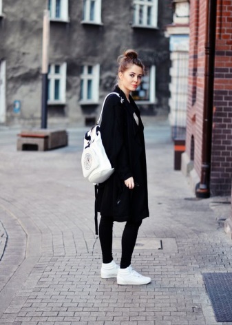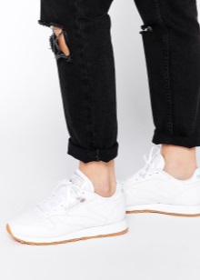 The white Reebok classic sneakers, among other things, look great in the image with a clear contrast when the clothes have black or red details, this only emphasizes the brightness and originality of the style.