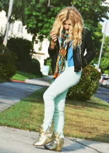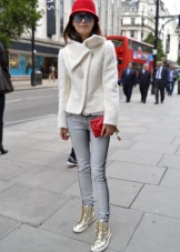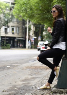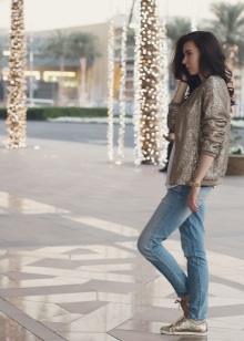 - Jeans are combined with almost all types of shoes, including golden sneakers.The style of jeans can be different - torn skinny, skinny, boyfriends, classic.