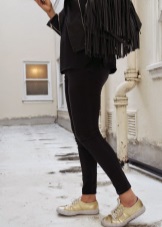 - Tunics and plain leggings combined with golden sneakers will create a seductive look that helps emphasize the virtues of a female figure.
