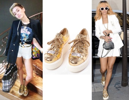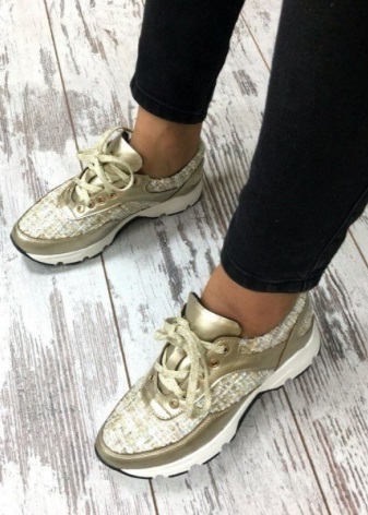 If you are going to wear these sneakers, set aside products in beige and brown. They will merge with golden shoes, and there will be no effect from such a combination. Is that a negative reaction of people who know a lot about fashion.